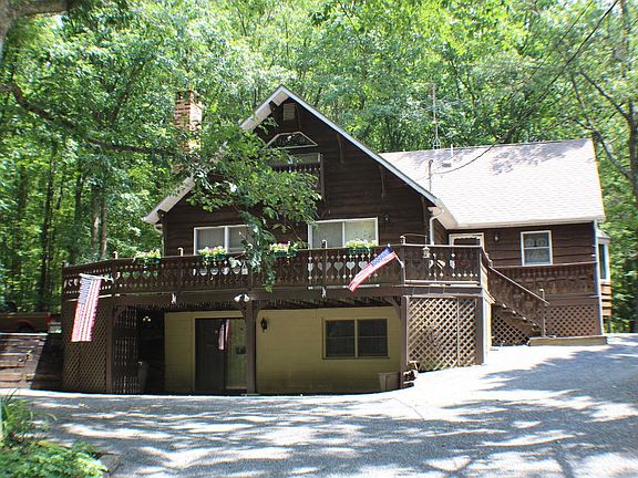 ***Offer Verbally Accepted***Wonderfully Maintained and Unique! Here is a Beautiful Rustic Wood Chalet that's tucked away nicely on a wooded triple lot. This home offers 4 Bedrooms, 2 Full Baths, a Formal Dining Room, Central AC, a Brick front Fireplace in the Living Room, a Wood/Coal Stove in the Full Walk Out basement, which you could finish for even more living space! Outside is a large Deck complete with customized Railings, a Two Car detached Garage with a spacious walk up Attic, 2 Storage Sheds, a circular driveway, a brick outdoor grill, and much much more! You simply have to come see it!