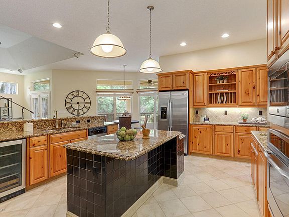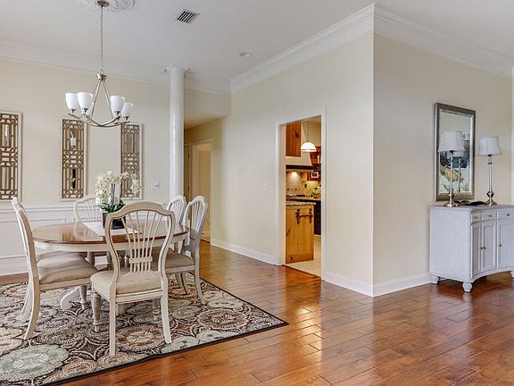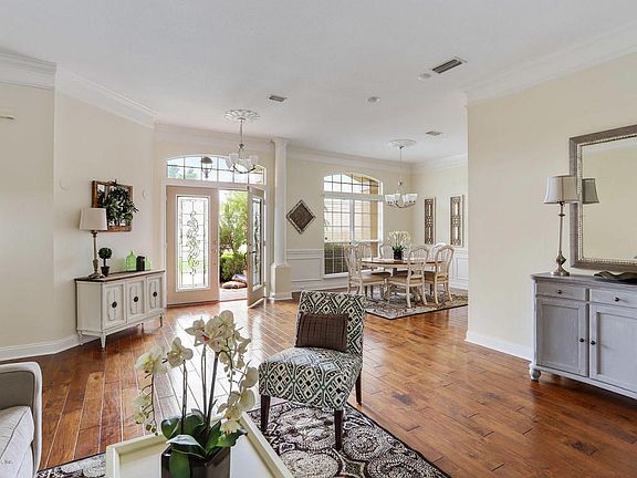 This 5/4 home is located on a cul-de- sac and features formal living and dining rooms, a true ''gourmet'' kitchen with granite counters, 42 in custom cabinets,stainless appliances, two ovens, wine fridge, wet bar and large island which is open to family room with fireplace and antique mantle. Designer touches throughout including hand scraped hardwood floors, central vacuum, lighting in all closets, tubes in wall pest control, picture lighting, brick paver patio. Walk or bike to elementary school and many community amenities which include 3 pools, 12 tennis courts, playgrounds and golf course. CDD fee is expired. Annual maintenance fee of $675