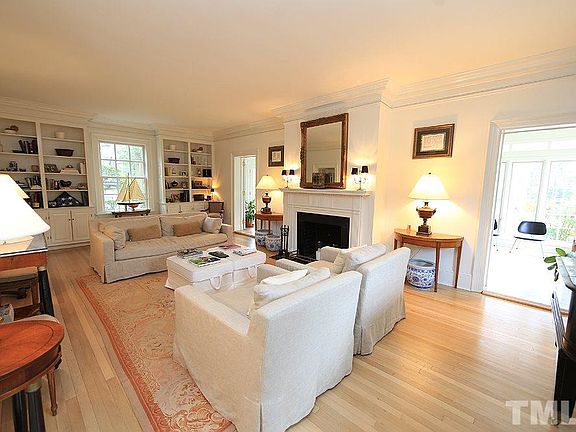 Renovated Hayes Barton 2-Story brick house on a private .39 acre lot. 10' ceilings on 1st floor. Large family room w/ heavy moldings and masonry fireplace. New Kitchen: White cabinets, white marble counter tops, subway tile back splash, 2 farm style sinks, 36" Wolf dual fuel range, Wolf wall oven & microwave, 36" sub zero refrigerator, sub zero wine cooler. Refinished hardwood floors throughout. New on demand h2O heater 2018, New Roof 2019, 2 New HVAC systems 2016. Large open backyard with tree house.