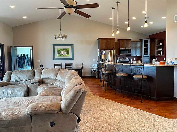 You do not want to miss this one! This beautiful acreage is located on a paved road and includes almost 5 acres with incredible curb appeal including stone pillars and an oversized 3 stall garage. There is a walk out basement on the back side of the home and a large 2nd story deck with a wide open view of the riverbed. The inside features 4 large bedrooms and 4 baths including a master bed and bath, knotty alder finishes and vaulted ceilings. Come see for yourself all of the personalized touches this home has to offer!