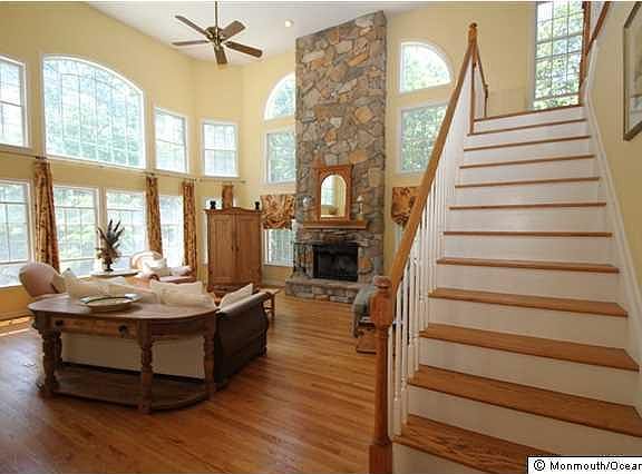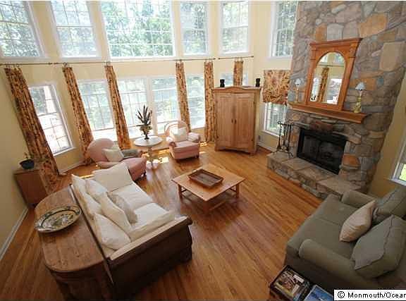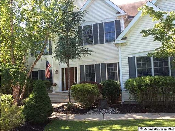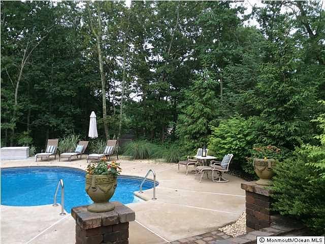 Spacious customized Marquis model in Allaire Woods. 5 bedrooms, 4.5 baths with hardwood floors through out. Privacy, tranquility on professionally landscaped 1.1 acre. Dramatic 20 ft custom fireplace in sun drenched family room, kitchen complete with custom tiled cook top hood with imported corbels, double wall oven and warming drawer, desk area, sliders to deck. Large master with sitting area, walk in customized closet, double sinks, over sized jacuzzi tub in master bath. Walk out basement with additional gas fire place, french doors, full bath. Patio, salt water pool enclosed with professional landscaping & large storage shed. 3 fire places, central vac, security system, pre-wired for surround sound, laundry chute. Laundry room with upper and lower cabinets & desk top.