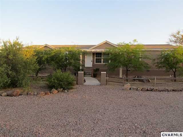 HUD Home. Save thousands. Newer home, constructed in 2010. Bright and open floor plan. Huge 3 bedroom home, big kitchen with island. No HOA!! Located on two acres of lush desert vegetation. Rare find. This is a must see! Buyer responsible for utility turn-on & any required permits for utility connect plus re-winterization fee. Buyer to verify all info. For overbidding and/or escrow repair information, see attached "Overbidding and Escrow Repair" MLS addendum.Manufactured home on a 2 acre lot. Per FHA appraiser property uses a private well.Property uses a septic system.Functionality is unknown. Kitchen appliances are missing. Roof Repair roof over bedroom #3, Water damage on ceiling of bedroom #3. Water may need to be hauled to property, AZ Water Resourses has not record of well infromation Brokered And Advertised By: Realty Executives Listing Agent: Sandy Kay Heath