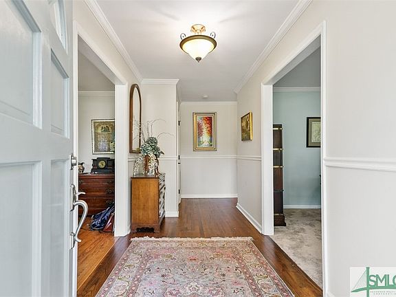 Custom-built beauty on sought after Wilmington Island. The welcoming front porch invites you to this 4 bedroom/2.5 bath home, with spacious office & separate dining room. The renovated kitchen is equipped w/ high-end quartz counters, induction stove, stainless appliances and breakfast area. Relax in the comfy family room w/ vaulted ceilings, masonry fireplace & beautifully designed wet bar w/wine cooler. You'll enjoy your morning coffee on the screened porch overlooking the large almost 2/3 acre lot and resort-style swimming pool and hot tub. Both baths are beautifully renovated and the primary bedroom is equipped with tray ceilings and 2 walk-in closets. Upstairs bonus room acts as the 4th bedroom, with plenty of attic space to add more room if you need it. Plantation shutters throughout, side-entry garage, sprinkler system supplied by shallow well, outdoor shower, tons of storage and no HOA and no flood insurance required. This home literally has it all. Just move right in!