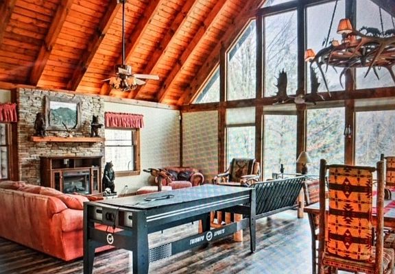 Amazing Lodge style home with two additional cabins! End of the road privacy with property bordering two creeks and hundreds of acres of USFS land. Perfect for a corporate or church retreat or family compound! Level pasture for your horses. Walking access to Benton MacKaye Trail. Fish or kayak in the nearby Toccoa river! Stocked pond, firepit, outdoor fireplace with covered pavilion, RV hook ups. This property has it all! Over $50k in gross rental income this year!