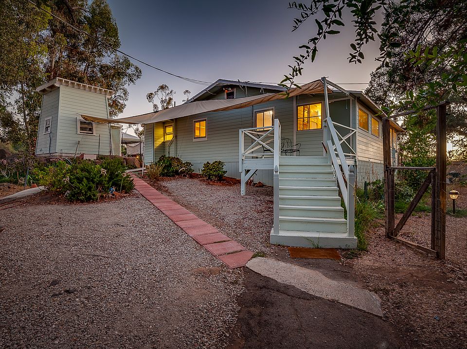 Call Realtor, April Halvarson directly at 858-735-9715 if your looking for a charming cottage set amongst mature oak and pine trees with seasonal creek and WELL with 5 thousand gallon storage tank perfect for irrigation & livestock on usable 1.48 acres offers the rural Alpine lifestyle all tucked away on a private road yet close to town, shopping, schools, restaurants and easy highway access. Enjoy dark night skies, direct access to Alpine''s 230 acre nature preserve with hiking and horse trails and mountain views from a shaded patio. The uniqueness of this home includes an 85 year old wooden water tower currently used as a laundry room, a rock alcove, and a separate art or yoga studio, workshop and trailer AND WELL FOR WATER