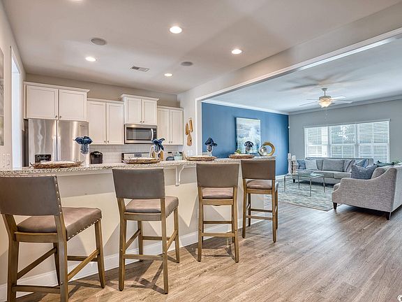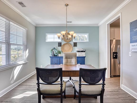 Welcome to this beautiful home that has never been occupied located in the wonderful Wild Wing golf community. Strictly leased as a model home for a builder that has been well cared for. This home offers four bedrooms, two of which are on the main floor, plus three full baths. The formal dining greets you as you enter the home, then walk through to the fully equipped natural gas kitchen complete with stainless steel appliances, granite countertops, gorgeous cabinetry, and a large breakfast bar with enough seating for four. The living room opens onto your covered patio overlooking a large backyard on this almost 1/2 acre lot. One of the largest master bedrooms offered, this great floor plan has an oversized walk-in closet and en suite with tiled wak-in shower. Wild Wing offers 180 acre navigable water, community boat/RV storage area with boat ramp, a amenity center that includes fitness center, gathering area, adult pool, large community pool, kid splash area, and water slides, a playground, tennis courts and a half basketball court. Don't miss out, call for a showing today!