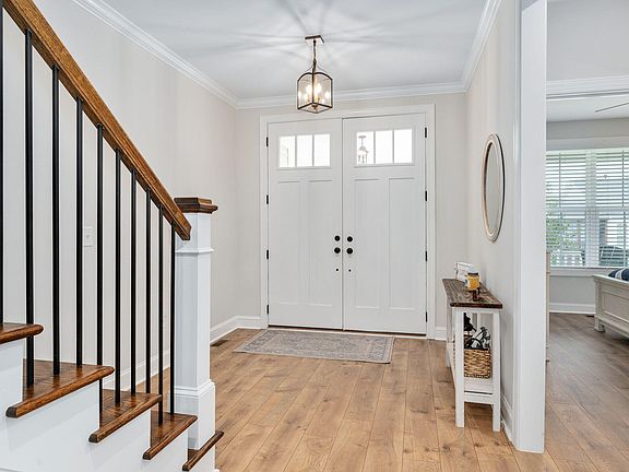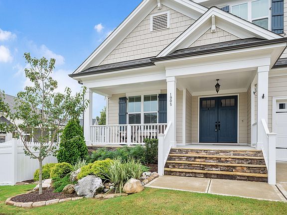 Welcome to The Concord Plan, a design that mirrors the stunning model home. This residence greets you with beautiful double-entry doors, creating an impressive entrance. Step inside to a bright, open living space where the vaulted ceiling and wood beams enhances the elegance of the main area. The 9' sliding doors lead to a spacious covered screened porch, featuring Easy Breeze windows that transform it into a versatile 3-season room. Whether you're enjoying your morning coffee or relaxing with friends in the evening, this space offers year-round comfort and views of the outdoors. The main level offers a luxurious owner's suite featuring a large walk-in shower and dual vanity for ultimate comfort. A guest suite and a versatile study—easily converted into a 4th bedroom—are also on the main level, providing additional flexibility. Upstairs, discover a generous 3rd bedroom with a full bath, a large recreational room ideal for entertainment, and ample unfinished storage space for your convenience. This thoughtful layout combines elegance with practical living, creating a perfect home for both relaxation and entertaining—indoors and out. Enjoy all the incredible amenities of Wendell Falls which include two pools, one of which is just a couple steps from this home, a 24-hour fitness center, over 10 miles of trails, several parks, and playgrounds.