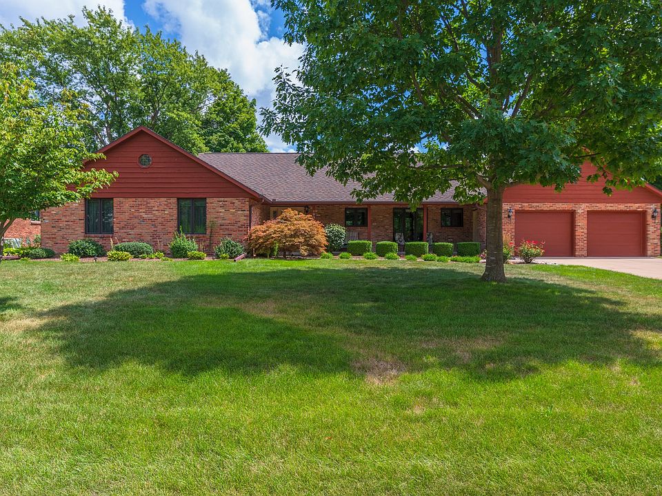 Well-built quality shows throughout this ONE-OWNER, ALL-brick ranch home in the Hedgewood subdivision that sits on over 1/4 of an acre. This home features timeless amenities such as front porch area, w/ dual entry into the garage, deck off of master, a screened in porch, 2 fireplaces, and your own solarium!!! This home has ample storage available! Home is great for entertaining with great yard size, updated kitchen, family rec room downstairs featuring a wet-bar where *NEW* refrigerator will stay with stools. The mudroom off the garage features laundry and additional storage. Garage is great size (24x23 w/ 7ft clearance). Updates include: *NEW* 2020 sump pumps installed, 2019 exterior deck stained, *NEW* 2017 carpet installed throughout home, *NEW* 2016 furnace installed, *NEW* 2014 water heater installed, *NEW* 2013 custom granite countertops throughout the home, *NEW* master bathroom 2013 remodeled w/ heated floor, *NEW* kitchen remodel w/ Amish cabinets and Bosch stainless-steel appliances, *NEW* 2009 Marvin Windows installed on main level and basement (solarium windows original double pain), *NEW* 6 inch seamless gutters w/ screens installed, *NEW* 2008 Armana A/C installed, *NEW* 2008 Guardian Automatic Standby Generator 16KW professionally installed, and *NEW* 2004 30 year CertainTeed architectural shingle roof professionally installed. ALL kitchen appliances stay! Patio furniture, dining room table set and pool table negotiable! Unit 5 schools! North Point Elementary! Close to in-town area amenities and constitution trail. Come make this your new home today!