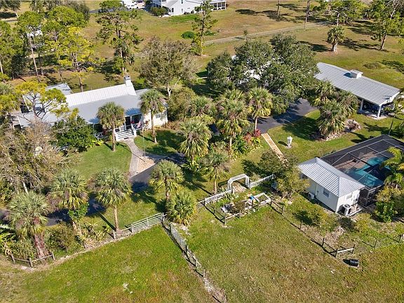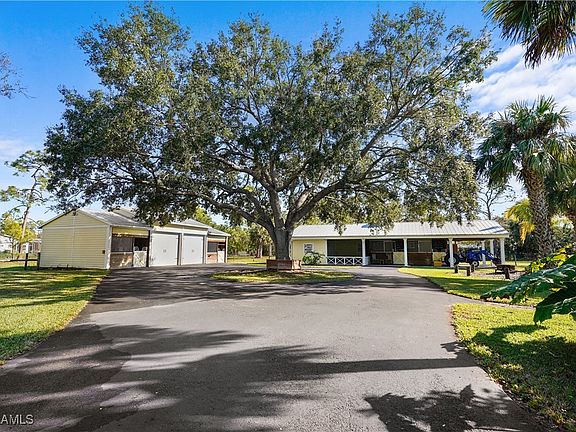 well thought out wood grain custom closet with built-in dresser, spa tub, dual sinks, separate shower, and water closet. The living room has a wood burning fireplace. There are 2 bedrooms and a full bath on the guest wing. One guest bedroom has French doors that lead to the screen porch. This sprawling 8-acre ranchette has a newer custom pool with pool house that has 2 sets of French doors one off the deck entrance and one opens to the pool cage with waterfall and wet bar. The wet bar is in water and has stools with a granite top. New pool pump and trubo cell. Large paver pool deck has plenty of room for multiple tables and sitting areas. There are currently 4 horse ready stalls, 2 are double sized, that were once 4 stalls so you could easily have up to 6 stalls, depending on your needs. The stalls are designed to open to paddocks. The property is fenced and cross fenced. There is a lighted riding ring that has been used for dressage and exercising horses. New metal roof and A/C in 2021. This fabulous ranchette offers very convenient country living! Under 4 miles to famous Lawhon’s Meat market, 4.2 miles to Walgreens and Publix, 9.8 miles to the River District - downtown Ft Myers, 23 miles to the Punta Gorda Airport and only 22 miles to RSW airport. Call for your private showing.