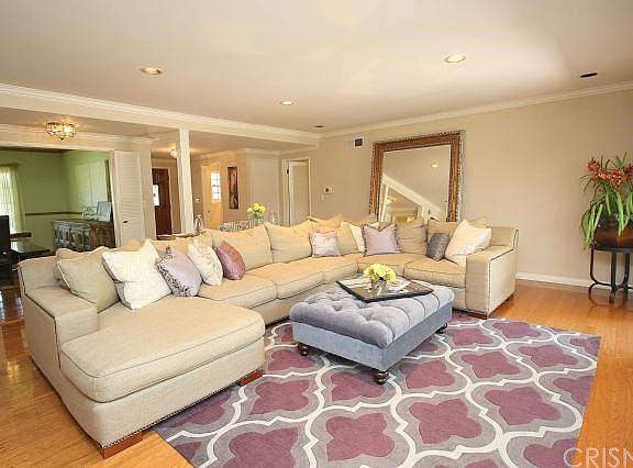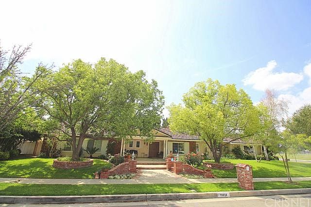 Absolutely stunning single story traditional home with captivating curb appeal! Inviting walk way, pilasters and extremely large front porch area. 5+3.5 baths, nearly 3000 sq ft of updated perfection. Formal living room and formal dining room. Hardwood floors, 2 fireplaces & gorgeous kitchen. Granite counters, custom cabinets, stainless steel appliances with amazing views of lushly landscaped grounds. French doors with beveled glass, dual paned windows & entertainers wet bar. Four bedrooms on one side, 5th bedroom with 3/4 updated bath, on kitchen side of home. Master bath was completely renovated, beautiful detailing, truly a show place. Walk in closet and French doors overlooking sparkling salt water pool and spa with removable fence. Covered 50 foot patio, fire pit, raised spa and professionally landscaped grounds. RV access, plus more off street parking, this is a must see home. Award winning schools, Granada Hills Charter High School, Nobel Middle School and Topeka Drive.