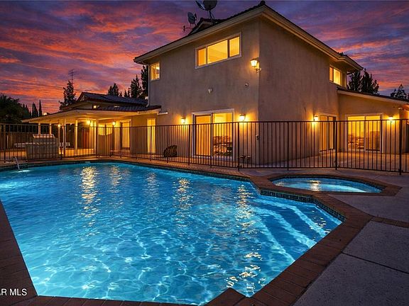 Welcome to this move-in-ready gated home located in one of Porter Ranch's most desirable neighborhoods, known for its excellent schools. Enter through double doors into a bright, open, and inviting floor plan. The spacious living room is highlighted by large windows and a designer fireplace, creating a warm and elegant atmosphere. The remodeled kitchen features custom cabinetry, granite countertops, convenient bar seating, and flows seamlessly into a true formal dining area perfect for family meals or entertaining guests. An oversized family room includes a wet bar and expansive sliding glass doors that open to the backyard, offering ideal indoor-outdoor living. A downstairs bedroom is paired with a beautifully remodeled, spa-like bathroom complete with a separate tub and shower. The three-car garage is currently utilized as a bonus room, providing flexibility for a home office, gym, or additional living space. Upstairs, you'll find three generously sized bedrooms that share an updated full bathroom with a thoughtfully designed separate vanity and bathing area. The private backyard is an entertainer's dream, featuring a large covered patio, oversized side yard, and a fenced pool and spa. Additional highlights include attractive landscaping and a home camera security system. Conveniently located near Beckford Elementary, Nobel Middle School, and Granada Hills Charter High School, with easy access to freeways, shopping, and dining this exceptional home truly has it all