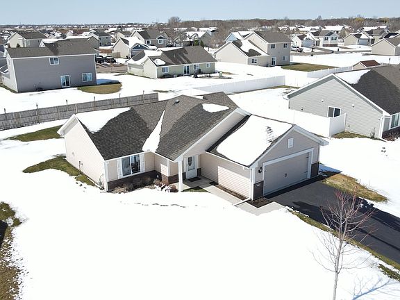 Don't miss out on this immaculately maintained 2 bed, 1 bath, slab on grade home with no stairs inside or out! This is better than new construction and is move in ready! You'll enjoy the nice upgrades with the walk in tile shower, upgraded flooring, custom blinds throughout, under cabinet lighting, lawn irrigation, 12x12 patio with awning, and the insulated and heated garage! Both bedrooms feature nice sized walk in closets. Great location close to many restaurants and shopping with easy access to I94 and Highway 10. Completely maintenance free exterior with vinyl siding and windows, aluminum soffits and fascia, gutters, and architectural shingle roof. Home has a high efficiency furnace, power vented water heater, air to air exchanger, and water softener!