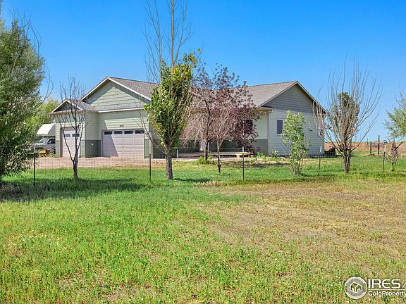 Now is the time for you to have your very own home on the range. Welcome to this quality built tri-level nestled on 5 fabulous acres where you can live your way and make your dreams come true. Clean and neat throughout, features include large open rooms with plenty of natural light, tile floors, tile countertops, oak cabinets, stainless island, newer carpeting, 3 spacious bedrooms with ample closets, 2 baths, large recreation room with propane stove, ceiling fans and generous deck with pergola. With a 3-car attached garage, North Weld water, Fully fenced and cross fenced horse high, pig tight and bull strong plus a loafing shed, garden area and fenced pasture this home is a great find.