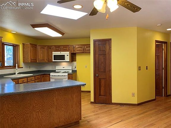 Wonderful Fixer-Upper In Gorgeous Woodmoor Location! Peaceful Setting Nestled In The Trees On .68 Acre. Gleaming w/Potential - Just Add Your Updates! Private Backyard & Deck Provides For Relaxed Outdoor Living. A Welcoming Front Porch Leads You Into This Sprawling Ranch-Style Home w/Eat-In Kitchen, Living & Dining Rm. The Owner's Suite Features a Walk-In Closet, Full Bath & Walk-Out To Backyard. There Is A Family Rm w/Fireplace, 2 Additional BRs, Full Bath, Laundry Rm & Oversized 2-Car Garage, All On The Main Level. The Basement Offers A Great Place For Family & Friends To Spread Out w/Nicely Sized Rec Rm, Bedrooms #4 & #5 & A 3rd Full Bathroom, Plus A Large Unfinished Area For Storage, Shop And/Or Future Finish! New Rood in 2015. Stellar Location With A Small Town Feel! Near Schools, Shopping, Entertainment, Hiking & Biking. Close To I-25 With Easy Commute To Colorado Springs & Denver. This Is The One!