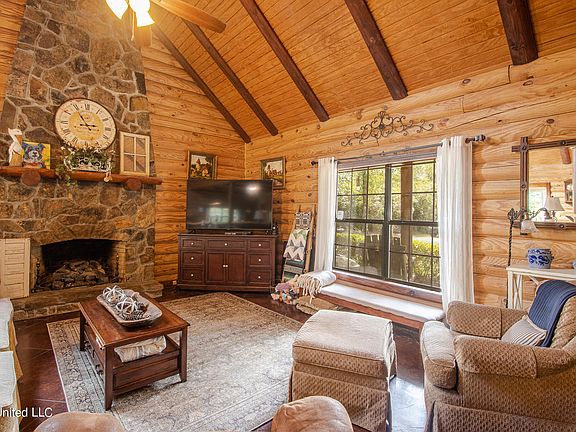 Absolutely one of a kind, stunning country retreat on 2.2 acres! Do not let this beautiful cabin with cathedral ceilings slip by. Hidden in serene nature down a gravel drive you will find your new city escape. Offering 3 bedrooms, 2.5 bathrooms, a loft, workshop and a covered carport. Nature is bountiful and beautiful crepe myrtles adorn your drive in. Fruit trees throughout the property include blueberry bushes, 2 pear trees and a citrus tree. Make this your new home and enjoy all the beauty or have one awesome vacation rental. The shop with ramp has power for projects or crafts. There is an rv hookup ready to go. Back of the land sits along Bayou La Terre. There is a short handmade nature trail behind the home to take a stroll, where you can nature watch and see turtles, squirrels and more. Centrally located not far from Stennis Space Center, Golf courses, Gulfport airport, and Coastal Casinos.
