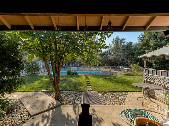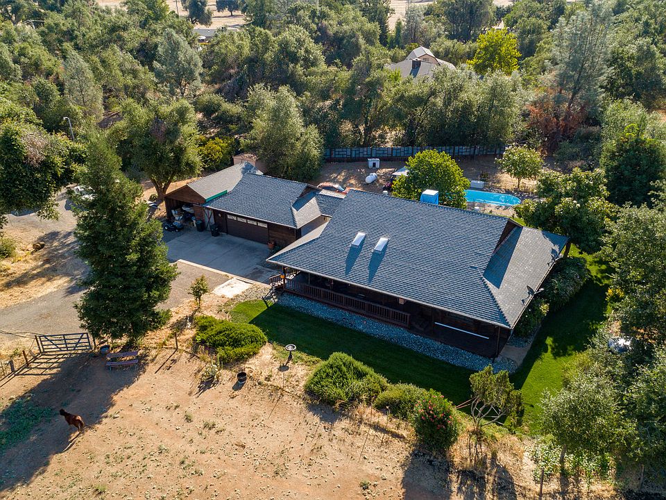 Everything on one property!! New Roof being put on! 3/2 1770 sq ft. 2.68 acres, POOL, JACUZZI, SOLAR SYSTEM PAID FOR, PERMITTED KITCHEN ATTACHED TO GARAGE FOR ENTERTAINMENT & BEAUTIFUL HORSE PROPERTY! End of street privacy and gated entry. Huge master bedroom, central heat and air, evaporated cooler, generator hook up, and orchard. Outside kitchen, feeds up to 400 people!! Surround sound