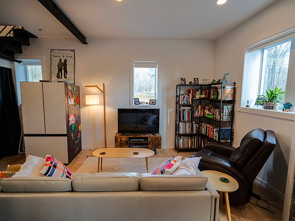 Rural convenience with large studio home on Glasco Tpke just off of West Saugerties Rd near Village of Woodstock. Rental available for 5 month season. Fully furnished and ready to move in. Open first floor with modern decor kitchen/dining area/ living room. Large bedroom on 2nd floor. Utilities and services included such as cleaning 2x per month, snow plowing. No smoking, no pets, shoes off at entrance. Standard NYS Lease terms for 5 months until May 5th, 2025, $2,300/month, $2,300 deposit. Application with $20 fee, financial evidence, references, credit report. Contact Sherret Chase to view property.