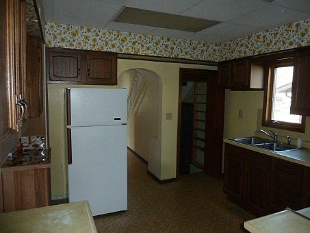 Unique home with lots of character and space! Enjoy the fireplace, wood flooring, arched windows, and great yard on corner lot with mature trees. Sold AS IS.