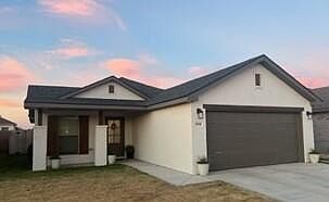 This 1,350 sf Country Contemporary home welcomes you with instant curb appeal highlighted by a painted brick front, vinyl and cedar accents, and double columns. This 3/2/2 home is perfect for hosting friends or cooking for the family featuring a dining nook, large kitchen peninsula, electric range, and a sizeable pantry. This home includes a master walk-in closet to fit his and her clothes, and a front and back yard with covered patios, eave lights and front/back sprinkler system. Home includes - Tiled to the ceiling bath tub (both bathrooms) instead of the plastic drop in ones, extra plush carpet (upgraded carpet). Extra cabinets not included in new builds - over fridge, laundry and master bath, finished garage (doors on water heater/furnace) textured and painted walls.