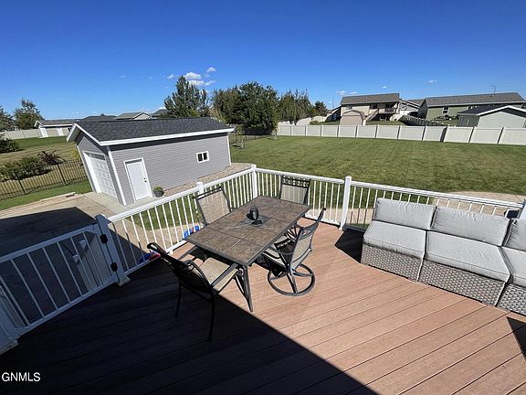 Welcome to this beautiful home in Keidel's South Terrace. This house has a beautiful HUGE fenced yard featuring a BRAND NEW shop with landscaping. The yard also includes a sprinkler system, camper pad, large concrete area, large maintenance free deck, and a colored stamped concrete patio with fire pit for enjoying those beautiful North Dakota evenings. The double garage is insulated and heated. On the upper level you will find a spacious kitchen with island and brand new sink, bathroom, bedroom, and master bedroom/bathroom. The downstairs includes a spacious family room, 2 bedrooms, and bathroom with a custom tile shower. Enjoy music on the home stereo while entertaining! This house is well taken care of and is ready for it's new owners to enjoy!