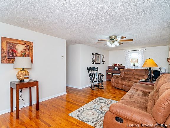 3-4 Bedroom 1.5 Bath updated home conveniently located right off the Sellersburg exit. Very well-maintained home over the years with an updated kitchen (2015/2016) featuring granite countertops, white Haas cabinets with soft close drawers, and equipped with all kitchen appliances! Both bathrooms have also been updated with tile flooring that extends into the large laundry room with built in cabinets. Hardwood floors in living room and 3 bedrooms and tile in the rest, so no carpet! The 4th bedroom is currently being used as a dining room, but could also be a family room, office, or really whatever fits your needs, so gives you flexibility! Outside you will find a comfortable covered front porch, 12x12 shed out back and partially fenced yard (temporary fence that will remain). Roof is approximately 4 years old. 1,558 sq ft and move in ready in Silver Creek school district! This home is eligible for USDA Rural Housing.