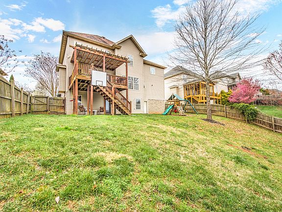 Hardin Valley Schools. 2 story with basement. 4 bedrooms 2.5 baths. Finished basement plumbed for bath, bonus room and originally finished for a recording studio. 9 ft ceilings on main floor, Hardwood floors on main. Built in bookshelves and desk in the office. Family room has wired surround sound, open to kitchen, fireplace with built in shelves on each side. Master suite with walk in closet, dual sinks, whirlpool tub and walk in shower. Nice deck with pergola. Patio below at the walk out basement. Storage in the crawl space. Fenced yard. Community pool.