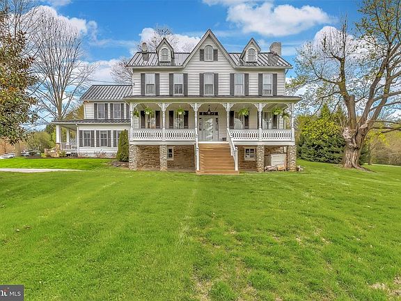 Quality of life awaits the new owners of this picturesque farmette, which offers idyllic country living just 20 minutes from Hunt Valley. Cross the bridge over the Little Falls onto 38 acres where Highland cattle graze and free-range geese and chickens roam. Both the home and bank barn date to the 1870s though they've been meticulously maintained and upgraded for modern living. The home sits on a hillside overlooking pastures, a pond and spring house. It has kept its historic charm, including a colorful stained glass transom window over the original front door, wood floors, four wood burning fireplaces and one gas fireplace, and original mantles. Yet a modern family will find every convenience: an exquisite master suite remodeled with cathedral ceilinged office; 4+bedrooms, 4 full, updated bathrooms, and a gourmet kitchen. Adjacent to the kitchen is a large family room with a stone bar and wine storage and egress onto the expansive, covered patio shaded by mature Norway maples. Steps away is a newly refinished, fenced pool equipped with wireless speaker system and nestled into a terraced English cottage garden. Twenty of the 38 acres are newly fenced and acreage is currently used for livestock and hay. The barn has water and electrical and can either be used for animals or converted into a party barn. Whether seeking a family compound, a hobby farm, or simply a rural retreat, this home has the features for any lifestyle.