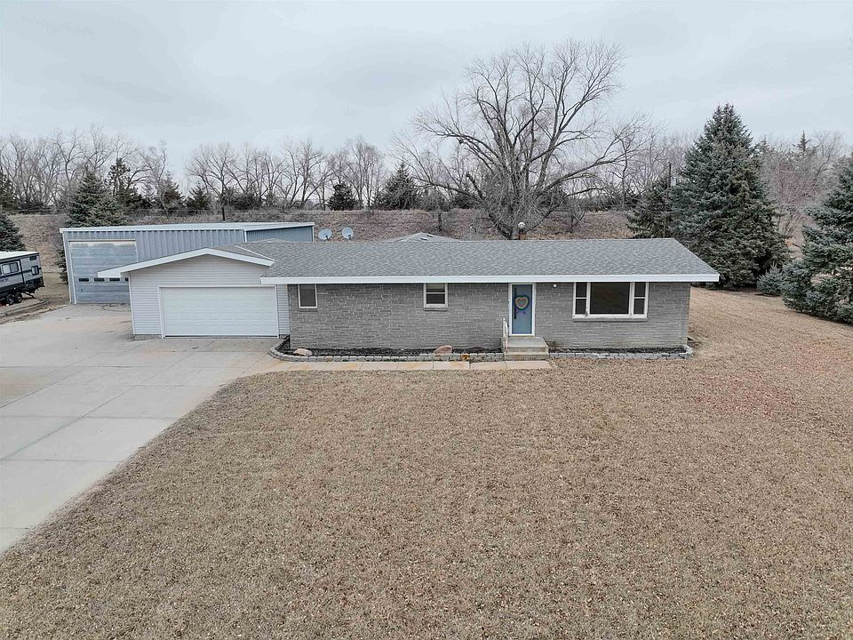 SPACIOUS RAMBLER WITH OPEN CONCEPT FLOOR PLAN. EXTRA LARGE LIVING ROOM WITH SLIDING DOORS TO PATIO, LOTS OF KITCHEN CABINETS. 9X12 MAIN FLOOR LAUNDRY ROOM INCLUDES FRONT LOADING WASHER & DRYER W/STANDS. UPDATES TO ELECTRICAL, HEATING, AND AIR AND PLUMBING IN 2005. NEW SHINGLES 2010. 24X24 ATTACHED GARAGE. 35X52 BEHLEN BUILDING WITH OVERHEAD DOORS, BIG ENOUGH TO ACCOMODATE A SEMI-TRUCK.