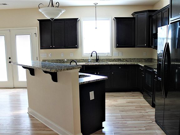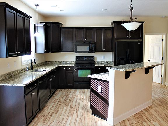 - RoomKitchenFeatures: Granite Counters, Kitchen Island, Recessed Lighting, Cabinets-Stained, Floors-Laminate