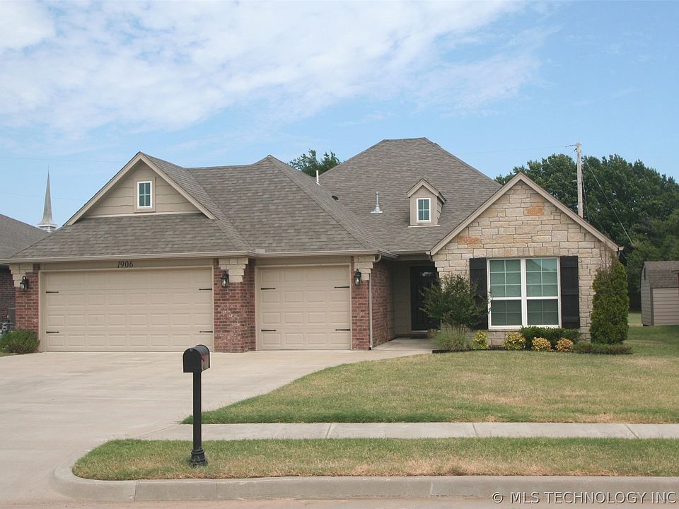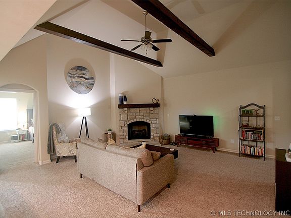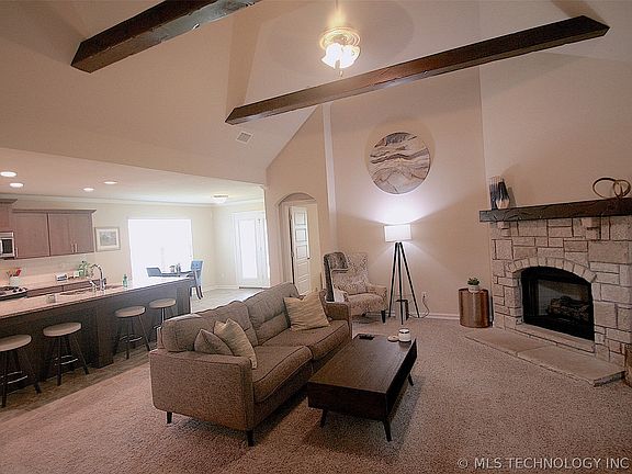 Gorgeous Amenities, better than new, Open Concept, 1 story, 3 bed, 2 bath, 3 car garage home w/in Park Place Add'n, East Bartlesville w/ access to community pool/clubhouse, & Wayside School! ROOF, HVAC, all appliances & systems just 5 yrs old. Kitchen loaded w/quality wood cabinetry, soft close drawers, granite counters, white subway backsplash, & gas range. Casual Dining open to wood-beamed vaulted Living Room w/ ceilings over 12' tall, w/sprawling eat-in granite bar, stone fireplace w/gas logs. Large Master Bedroom has room for dressers, seating, desk, or exercise equipment. Granite master bath has double walk-in closets & sinks, faux marble walk-in shower, and private toilet area. Second bedroom with vaulted ceiling. Full privacy fenced flat yard great for play equipment, pets. Covered Patio, with sunny side yard for gardening. Large pantry storage & spacious laundry room with folding table. Built in 2017, Energy Star Rated: windows, HVAC, appliances. BEAUTIFUL in great neighborhood.