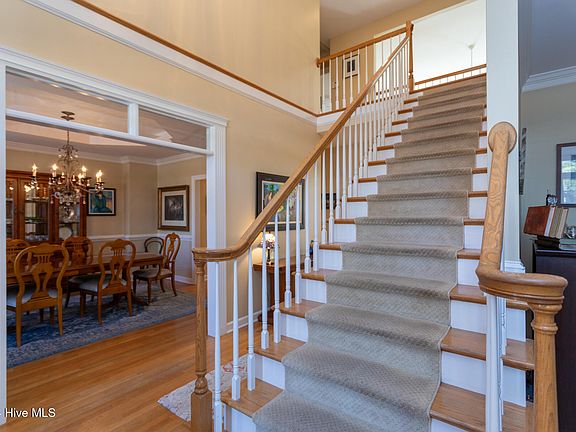 This beautiful stately brick home is situated perfectly between the historic Village of Pinehurst and downtown Southern Pines on iconic Midland Road. It offers luxurious living with quality craftsmanship and fine finishes that any discriminating buyers will appreciate. High ceilings, hardwood floors through the main living areas, deep crown moldings, room entries with pilasters and transom windows above, tray ceilings in the dining room and den/study, and much more. The living room features a soaring two-story ceiling, lots of natural light and balcony above and gas log fireplace. A beautiful kitchen with bright breakfast nook features granite counters, beautiful cabinetry, stainless steel appliances, double oven and cooktop. The main level primary suite features a spacious bedroom, large walk-in closet and en-suite bath with his and her vanities, corner jetted tub, step-in tiled shower and water closet. The main level also includes two powder rooms. The upper level has three more bedrooms, office, two full baths and an oversized bonus room. The home is surrounded by mature landscaping and a large, fenced backyard. It would be perfect for a growing family or someone with lots of relatives who love to visit. All the great amenities offered by this golfing mecca are close by. Definitely a must see!