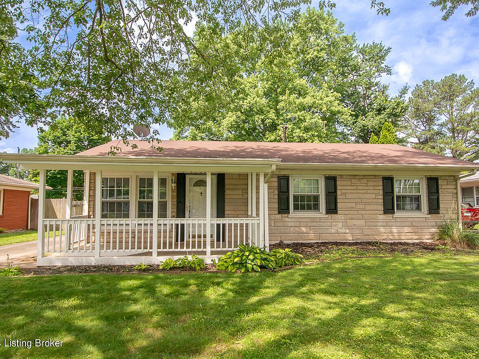 Nestled towards the end of a cul-de-sac in this centrally located Whipps Millgate neighborhood of Lyndon, this updated stone ranch awaits! From the covered front porch, enter into the living room with updated flooring. White cabinetry and updated granite countertops and subway tile backsplash outfit the updated kitchen. All appliances remain! Enjoy access to the back covered deck and fully fenced yard. Washer and dryer hookups in the kitchen with a large pantry/storage closet off the hallway. Three bedrooms and a completely updated full bath. Fully fenced yard offering the perfect place to relax and enjoy the outdoors. Within the fence, the property includes a convenient outbuilding/ shed with electric for all your outdoor storage needs and a large 2 car detached garage. Newer roof, HVAC and water heater. This lovely, updated home won't last long!
