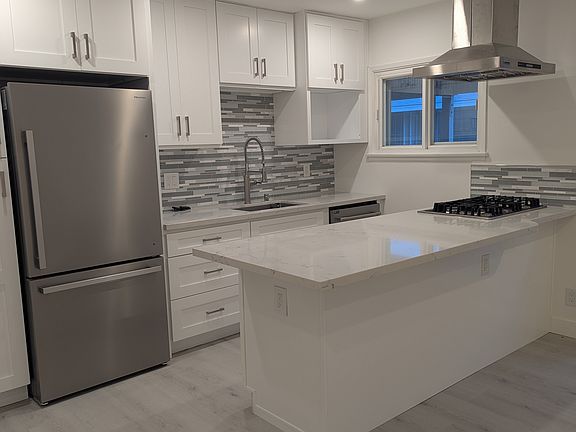 Remodeled, 100% Brand New! In-unit washer-dryer, 1 car garage, central air. Brand new kitchen w great counter-top / eating area, all new cabinets, fixtures, recessed lighting (w/ dimmers). New window shades. Central air / heat. New appliances included, oven, dishwasher, refrigerator, washer / dryer.
