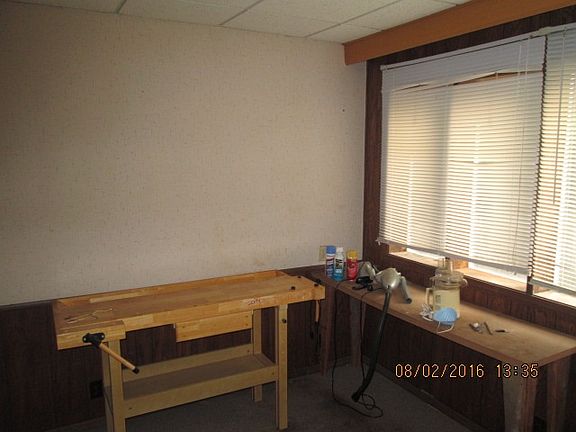 Property was used as an office. Zoning is limited commercial so it could serve as a rental property or also as a business. Space for kitchen, but no kitchen set up currently.