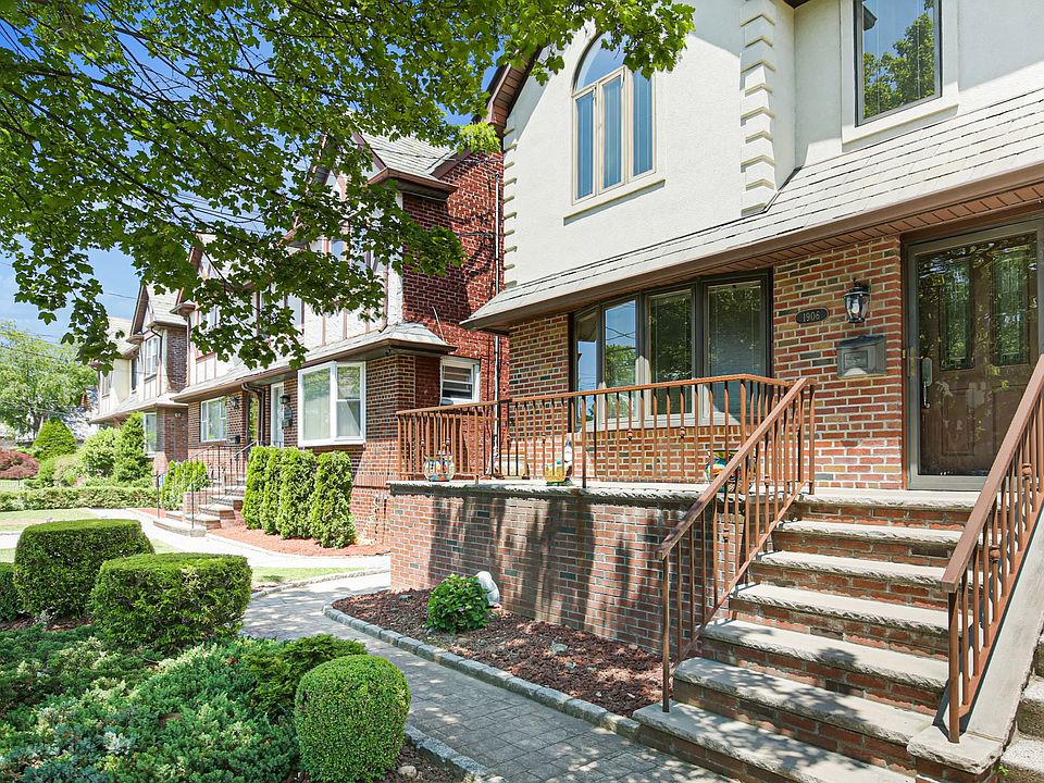 On an architecturally pleasing residential street in the sought-after Indian Village enclave of Morris Park, this modern and well-kept home dazzles with open, airy interiors and fantastic outdoor space. Red brick, manicured greenery, and a sweet porch strike a perfect opening note and lead indoors to an oversized living room with hardwood floors with inlays, bay window, and eye-catching gas fireplace. An open-concept kitchen is a showstopper with Shaker cabinetry, gleaming granite, breakfast bar, stainless-steel appliances, including Sub-Zero fridge and Wolf stove, and an intimate dining area with glass doors to a large deck. An updated PR completes the main level, and upstairs, hardwood floors continue to a spacious master bedroom with vaulted ceiling and two additional bedrooms. The tiled hall bath features heated floors. The lower level features a family room with heated floors, butler's kitchen with wine fridge, laundry, modern bath, and walk-out to a shady patio and expansive 4 car driveway with 1 car garage. Conveniently close to express bus, subway, Metro-North, plus Jacobi Hospital and Einstein, this is a hard-to-resist gem!