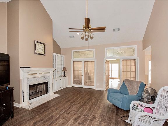 Don't miss out on this one! This 4 bedroom 3 full bath home includes a very functional floor plan, awesome lot and gorgeous pool!! ALL ON ONE LEVEL! The large living room has cathedral ceilings, built in cabinetry, and a wood burning fireplace with a gas start. Nice size sunroom off main living room for added living space that makes perfect for an office or 2nd den. Spacious kitchen has tons of cabinet storage, center island and LARGE eating area. All bedrooms are very generous in size and feature ceiling fans. Spacious master suite with cathedral ceilings, double vanity in bath, large jetted tub and separate shower. GORGEOUS, PRIVATE backyard with pool and completely fenced backyard. Back area also includes nice storage building. 2 car garage. This beautiful home in this established neighborhood will not disappoint!