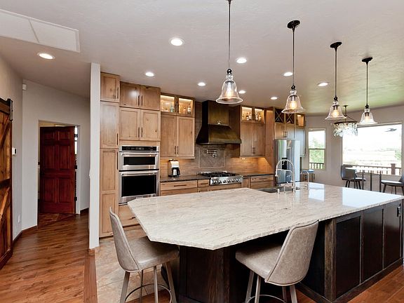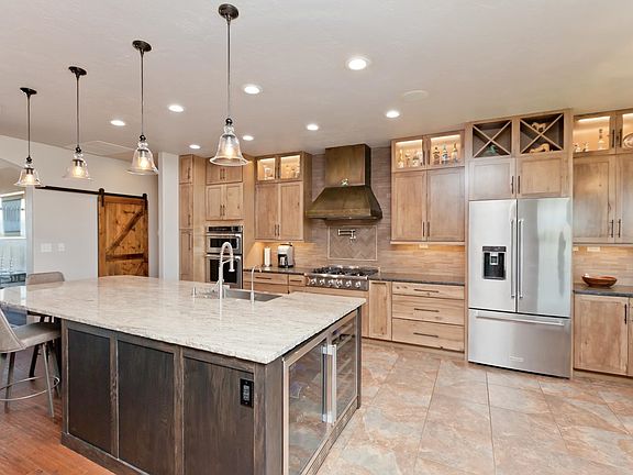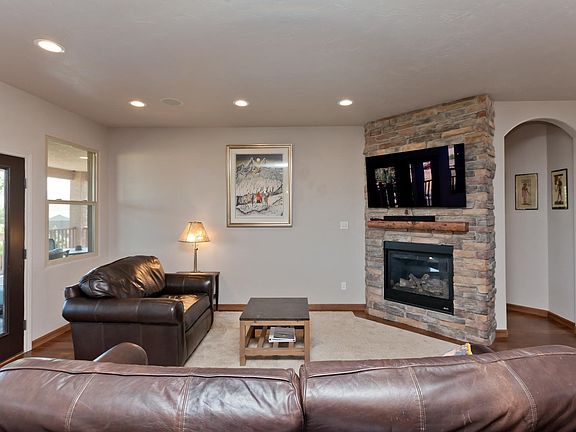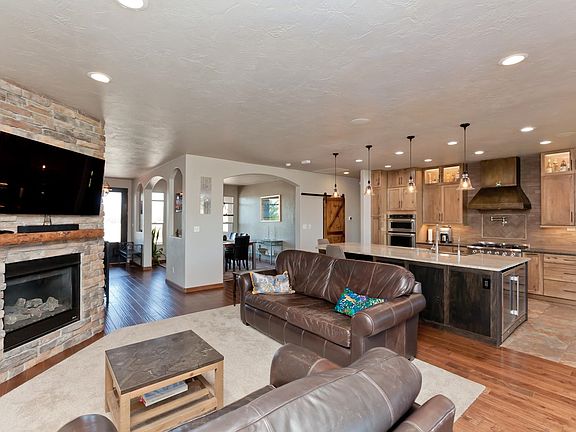 Welcome to this prestigious, open concept home complete with owned solar modules and efficient geo-thermal heating/cooling. Average electric bills are approximately $100 (see disclosure in documents). The exquisite kitchen is a chef’s dream, with convection oven, built-in microwave, pot filler, custom cabinets with pull outs, huge granite island, built-in wine and beverage coolers, and an amazing pantry with automatic lighting. Adjacent to the kitchen is a breakfast nook with bay window. The large formal dining room, with views of the Monument, is located just inside the front door with an office across the entry. The living room includes canned lighting and a gas fireplace. The large main bedroom comes with plenty of natural sunlight and a 2-way fireplace that connects to the main bathroom, which includes a walk-in shower (2 shower heads) and garden tub. A 2nd bedroom and ¾ bath with walk-in shower are located on the main floor. Downstairs is the garden-level walk-out, containing a kitchenette with wet bar and refrigerator, a large game room/family room, a 2nd main bedroom with walk-in closet and ¾ bathroom, a 4th bedroom, a full bath, and a hobby/play/storage room. Newer Karastan carpets and Hunter-Douglas window coverings are in all bedrooms. Enjoy views of the beautiful back yard and Book Cliffs from the awesome elevated deck that runs the length of the house or patio below, which includes a Sundance spa/hot tub. A fire pit is just a few steps away for those cool evenings. The 42'x36' Cleary barn has 220V, water, and room for 6 more vehicles/RV. The 3-car attached garage contains plenty of built-in storage. About one acre of pasture land is completely irrigated with gated pipe. New landscape irrigation pipe and pump were installed in 2021.