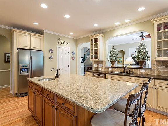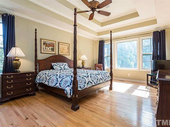 STUNNING Executive home in sought after Bishops Gate! Features 1st Floor Master, Amazing designer kitchen with granite counter tops, SS appliances with gas range. Hardwood floors throughout first floor; AWESOME master suite with WIC, HUGE Shower, Dual Vanities & separate tub. Media room plus Bonus. Beautiful deck & screen porch overlooks private backyard that backs to HOA protected area. HOA includes Pool. Convenient to Greenway trails, 540/64, Downtown Cary. HVAC new in 2018. Move in and Enjoy.