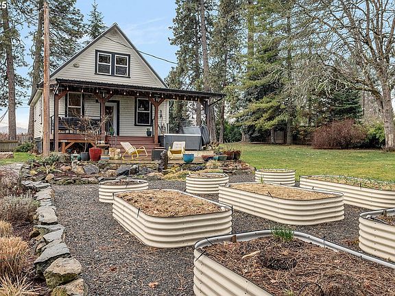 Experience one-of-a-kind living in this stunningly reimagined church-turned-bungalow. With an over-the-top cool factor, this unique two-story home blends historic charm with modern elegance. Featuring original plank floors, a stylish kitchen with sleek soapstone countertops and a fully remodeled bathroom. The vaulted ceilings showcase beautiful exposed wood beams, creating a warm and inviting atmosphere. New on-demand water heater and mini-splits will keep you comfy all year long. Step outside to a spacious custom patio with water feature, perfect for relaxing under the stars, along with a hot tub for ultimate unwinding. The lush, irrigated .39-acre lot features raised planters in the back, ideal for gardening, while the expansive lawn offers plenty of space for entertaining. Perfectly placed to enjoy the best of Hood River’s outdoor adventures, dining, and wineries!