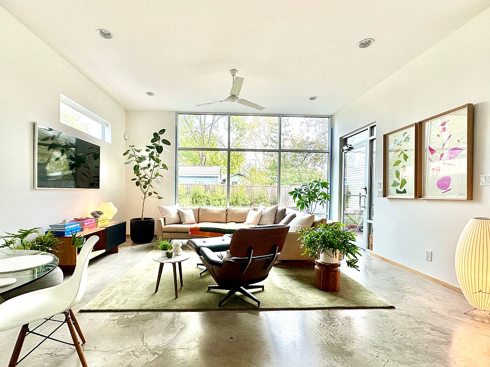Modern architectural gem centrally located in Brentwood. 10 foot ceilings both upstairs and downstairs. High-end finishes throughout. Solid wood floors upstairs and polished concrete downstairs. No carpeting. 1st floor features a wall of glass facing north, so tons of indirect natural light throughout the day. Upstairs features custom ceiling-height solid wood sliding doors which can be re-positioned to convert rooms to fully open spaces or closed for privacy. Newer stainless appliances with gas range. Front-loading washer/dryer included. Large walk-in pantry. Elfa storage in all bedroom closets and pantry. Walls recently painted and wood floors refinished. 2 full baths upstairs and half-bath downstairs for guests. Separate HVAC units upstairs and downstairs helps with energy use and comfort (New upstairs AC in 2024). Nest thermostats + Ring security cameras. Local/owned alarm system (no monthly fee). 2 car off-street and oversized covered parking with large storage closet. Yard fully xeriscaped so no grass to maintain. Backyard fully fenced. No smoking. Small pets on approval. New landscaping for front yard planned for the spring. 12-18 month lease. tenant responsible for utilities.