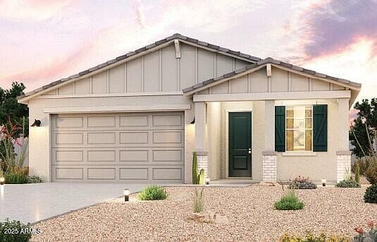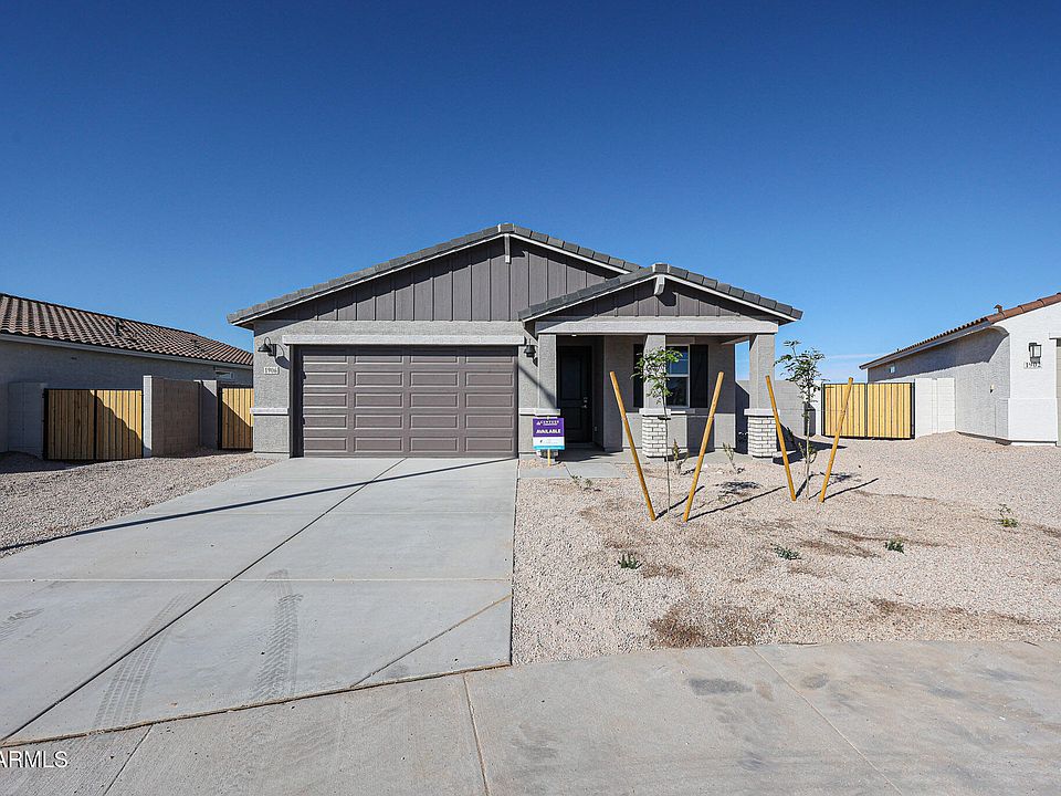 Be charmed by this new home in the vibrant The Village at Sundance- The Palms Collection!!! Plan 2 is a stylish and functional home. The elegant foyer has wood-look tile flooring. There is an option for an open study or bedroom. The e kitchen features an island, stainless steel appliances, granite countertops, and a pantry. The dining room flows into the great room, with access to the covered patio. Enjoy 9' ceilings, 2-panel interior doors, ceiling fan prewires, and a Mudroom adjacent to the Laundry room. The primary suite offers a luxurious bath and walk-in closet. Two additional bedrooms share a full bath. Features include front yard landscaping, ceramic tile flooring in key areas, a 2-bay garage with an opener, and Century Connect Smart Home technology. Amenities!!