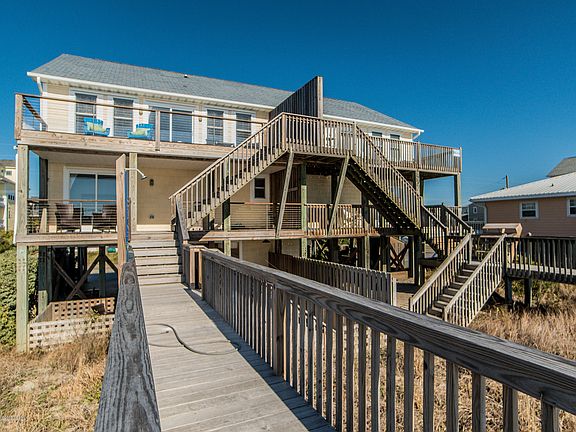 Ocean front beach home sold fully, professional decorated. This 4 bed beauty is easily rented out and income producing! The reverse plan allows living space to capture the sparkling Atlantic and gorgeous sunrises on popular Topsail Island. Home has new roof and two new HVAC units! Upscale finishes from remodel include updated kitchen with granite and stainless (new dishwasher), tile back splash, lovely hardwood pine floors through the living and second floor, wainscoting new lighting, updated bathrooms, etc. etc. Master suite opens to the deck! The sky bridge over to the island is completed and makes this an easy ride from I-40 from Raleigh, Charlotte and all parts west of the ocean! Details are everywhere in this home. Call for a showing today! Come and enjoy it for years!