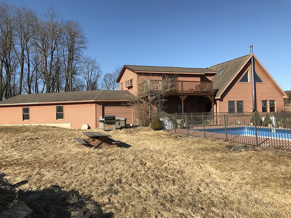 Contemporary 3 bedroom / 3 bath home on 32 gorgeous acres; with vaulted ceilings, swimming pool & hot tub, breathtaking views, 2-stall barn with electric and water, fenced pasture, pond and 2 creeks. 2-car garage plus bonus workshop area.