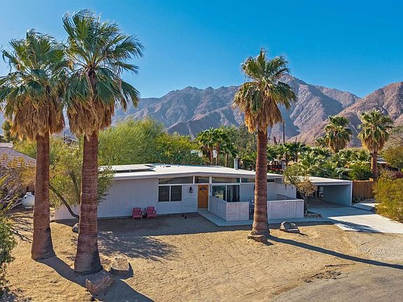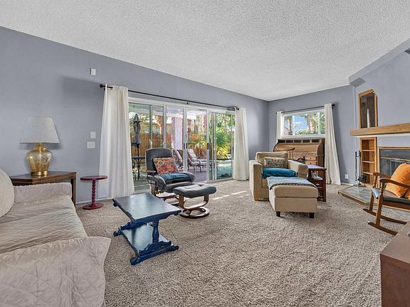Mid Century Modern 2 bedroom, 2 bath home with den for office or an additional bedroom located in the Sun Gold neighborhood. Back yard has nice trellis patio area and pool with trellis gazebo. The patio and pool area with a gazebo are great features for outdoor living, especially in warm weather. The living room has a fireplace and a nice slider to the backyard to make it feel open and inviting. Clearstory windows are such a great touch in the dining and kitchen area as well as the den that help to bring in natural light while maintaining privacy. The combination of those with a slider leading out to the courtyard create a bright, inviting atmosphere in the dining and kitchen areas. Leased solar.