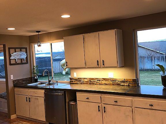 Welcome home. This Completely updated 3 bedroom 2 bathroom home Sits on 1+ acres on the edge of town. Keep your family warm in the winter with a wood burning stove. Stainless steel appliances compliment the custom concrete countertops and farmhouse cabinets. Large sliding glass door gives you easy access to the spacious backyard. Large closets in all 3 bedrooms, walk-in closets in 2. Beautiful tiled master bathroom with shower and corner soaking tub. Pasture has shelter and electric fencing for whatever furry,feathered, or hooved family members you bring with you. Underground sprinkler system with separate irrigation well will keep the lawn and pasture green all summer long. Mature trees provide wind protection, with mature and young fruit trees, raspberries,strawberries,blueberries and roses situated throughout the property. Large established garden area to help you be as self sufficient as you want to be. Updated septic system. 2 car 24x28 detached garage with new doors, newly finished interior with a custom epoxy floor, insulated new lighting. 28x28 fully heated and cooled shop with fully plumbed in large air compressor and air lines, great lighting, wired for welders ect, also 30 amp hookups for your RV. feel free to call or message for any other specific questions or photos, lots of extras to see in person.