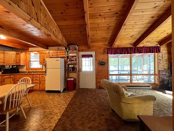 Very private, beautiful log sided home with full log corners features 205’ of level frontage on the highly sought after Spider Lake! This gem is located on a dead-end road without a neighbor in sight! Attached 24 x 24 garage leads to this charming Northwoods interior lined with tongue and groove knotty pine walls, recessed ceiling and square beams. Open concept kitchen, dining and living room area offers custom pine kitchen cabinets and a freestanding fireplace on a brick hearth. A waterfront full-length screen porch stretches across the home, perfect for gazing at the lake without those pesty bugs. New mound septic system was installed in the fall of ’21, new water lines, new fixtures, and comes fully furnished, including kitchen items, pier, 2 Jon boats and motors- move in ready, just bring your toys! The perfect Northwoods charm is calling you!