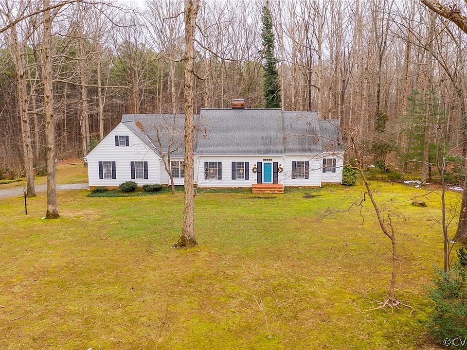 Super cute 3 bedroom 2.5 bath custom Cape in Rockville. Situated on 12+ acres at the end of the cul-de-sac this country oasis is full of charm & ready for you. Foyer entry with decorative ceramic tile flooring opens to the living room with hardwood floors and wood burning fireplace. Formal dining room with large picture window, chandelier & decorative moldings. Kitchen features granite counter, laminate flooring, walk-in pantry & ample cabinet & counter space. Cozy family room with wood burning stove, exposed brick, beamed ceiling & sliding glass doors to the back patio. Home office with hardwood floors & built-ins. 1st floor primary suite with hardwood floors, walk-in closet, sliding glass doors to back patio & full bathroom. Upstairs is a loft space perfect for cuddling up with a good book or kids play area with hardwood floors, full bath & pull down attic. Bedroom 2 has hardwood flooring, picture window & sliding door closet. Bedroom 3 has hardwood floors, picture window & walk-in closet with unfinished attic access. Home also comes with 2 car attached garage & large back patio perfect for summer BBQs. You will fall in love with all this home has to offer, so don't wait!