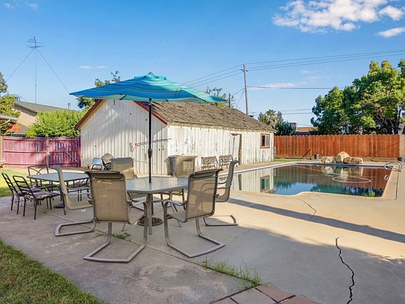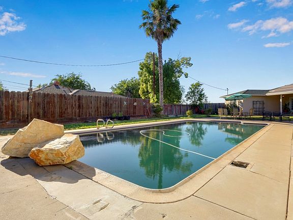 Don't miss this HIDDEN GEM, a private road leads to a picturesque home with almost 2 acres of fenced in land. Great for agricultural or livestock use. Lots of upgrades put in over the years; owned solar panels, roof, windows, remodeled kitchen & master bathroom, new carpet . The backyard has a large pool with a pool house that needs renovation. The yard also has a beautiful Koi fish pond that gives the yard a feeling of tranquility. The possibilities are endless with this secluded private home.