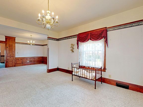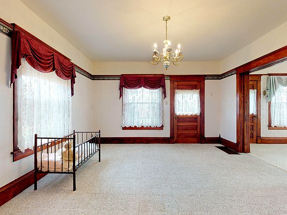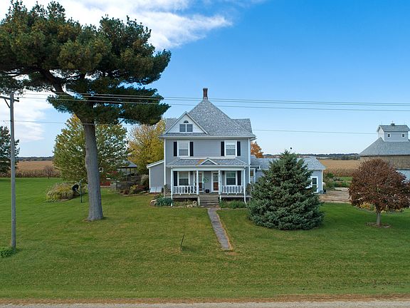 Spacious 5 bedroom 3 bath country home on 4 acres. The home features beautiful natural woodwork, many built ins including a built in china cabinet, pocket doors, and walk in closets. The kitchen has access to the deck with country views. The main floor master bedroom features an adjoining sitting room/dressing area with walk in closet and full bath. The home has vinyl windows plus a water conditioner and filter. The outbuildings include a 20x80 storage shed, 24x38 corn crib, 10x16 shed, 34x60 barn, and silo. The dining room hanging light is not included.