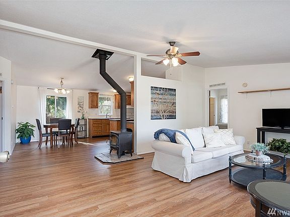 View home on quiet and private 1/2 acre lot in Big Lake. 3 bedrooms/2 bathrooms with vaulted ceilings, woodburning fireplace, and open floorplan. Property features outbuildings, firepit, fruit trees, and garden space. Located in Sedro Woolley school district. Minutes to public boat launch and conveniently located to downtown Mount Vernon.